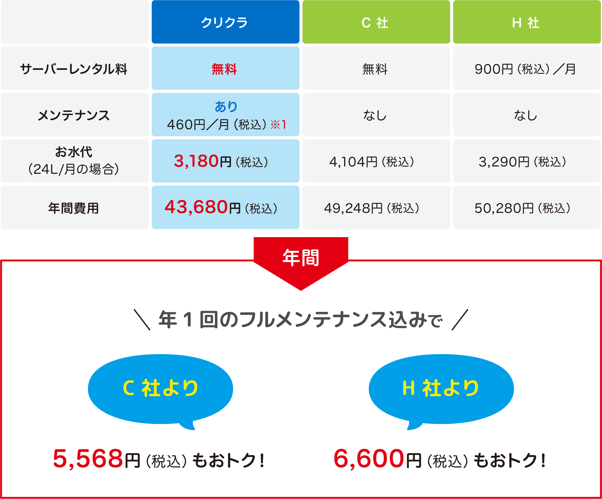 ・3ヶ月間でご利用本数が6本未満の場合はサーバーレンタル料(1,100円/月)をお支払いいただく場合がございます。
